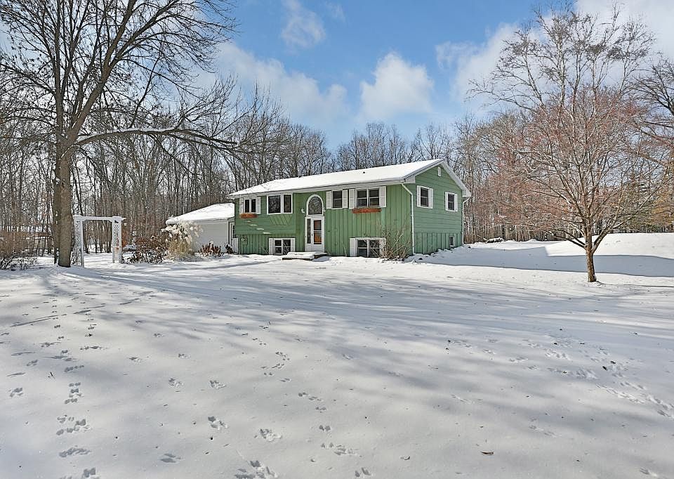 Welcome to the Country! Stunning setting - secluded and nestled away in the woods! Beauty and natures bounty surround you in the 3 bedroom on one level home. 2 baths and a 4 season sunroom you will Love! Love! Love! It features windows on 3 sides, vaulted ceiling and ceiling fan - skylights with retractable shades. Settle in and watch the birds, wildlife and bask in the natural setting! Lovely deck with retractable awnings to enjoy the outdoors time all day long. Deer and wildlife abound. Hardwood floors, shiplap wall in living room. MUST SEE! New Septic system and furnace in 2019. Move in Ready!