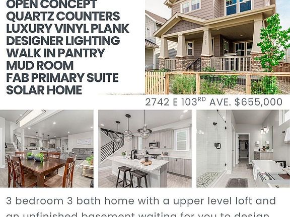 Like New! CONCESSION FOR INTEREST RATE BUY DOWN NEGOTIABLE. Modern home with all the upgrades, including builder paid solar panels. Great curb appeal with stone accent pillars and a cozy front porch perfect for sipping your morning coffee or greeting guests. Come inside the spacious entry, and take in the LVP wood-look floors, recessed lighting, high ceilings, chunky metal railings and luxury lighting. A great open concept layout with a formal dining area ideal for special gatherings, living area and all flowing into the gorgeous kitchen. This kitchen has it all stainless steel appliances, gleaming quartz counters, ample cabinetry, luxury pedant lighting and a center quartz island with a breakfast bar that invites conversation and casual dining. The jewel of the kitchen is the huge walk in pantry with room for everything. A useful mud room with storage cubbies bench, the perfect spot to drop all your stuff. Staircase has modern black metal railings to upper level, a flexible loft space and 3 bedrooms! A spacious primary bedroom offers a peaceful retreat with its private ensuite featuring dual vanities, modern slipper tub for soaking, a large walk in shower with luxury tile accents and a generous walk-in closet. A large laundry room, 2 additional bedrooms and a full bath with dual vanities finish the upper level. The unfinished basement is brimming with potential where you can create a home theater, game room, gym, or a multi-functional living area tailored to your lifestyle. The attached 2-car rear garage offers convenience and additional storage space for your belongings. On an easy to care for lot with private gated front yard, very little outside maintenance required. Located near parks, major freeways, shopping and eateries, this property delivers both comfort and accessibility. Whether you're looking for a peaceful sanctuary or a home base close to everything. Don't miss your chance to make it yours. A truly special home!