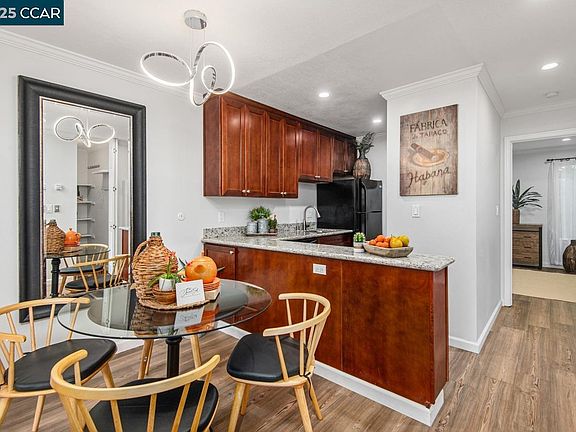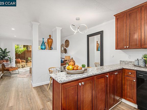 Upgraded 1st floor unit at Station West, updated kitchen with peninsula, updated bathroom, vinyl hardwood look like floors, granite counter tops, fireplace with push button starter, lots of closet space and a private sunny patio, recessed lighting, light dimmers in bedroom and living room, crown molding. Upgraded energy efficient sliding patio door and bedroom window. Private patio with storage. Low HOA $358.00 a month. https://tour.jacoballenmedia.com/tours/rqnc9y Covered carport, plenty of visitor parking too, wait list for bike storage. Ideally located just a few blocks from BART, shopping, restaurants, coffee shops, Bay Club, parks, trails and more! Inspection report available and Disclosures ready.