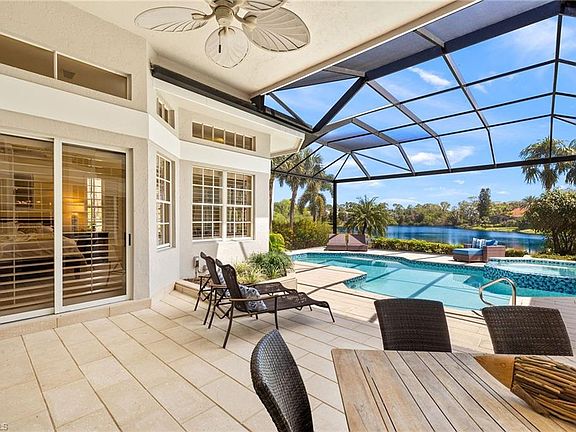 Riverwalk Estate with Panoramic Lake Views. Discover this exquisite elevated home in Bonita Bay's coveted Riverwalk neighborhood. Its open, airy floor plan and soaring ceilings create a welcoming atmosphere. The spacious great room features a gourmet kitchen, family room with a full wall of stunning wood cabinetry including fireplace along with a wet bar, wine cooler and beverage refrigerator. Enjoy breathtaking lake views from the living room, which opens onto a screened-in "Picture Window" enclosure encompassing a large, refinished pool and spa, stone paver deck, pool equipment, all of which were replaced in 2022. Additional recent updates include a new roof, fresh exterior paint, energy-efficient attic insulation and interlocking garage floor tiles. Residents of Bonita Bay enjoy a wide range of amenities, including walking trails, parks, boating, tennis, pickleball, bocce ball, Marina with waterfront restaurant, and a private beach park on the Gulf of Mexico. Bonita Bay Club memberships offer world-class golf courses, tennis and pickleball courts, lawn croquet, a saltwater pool, and multiple dining options as well as the Lifestyle Center featuring a state-of-the-art fitness center and full-service spa. Experience the ultimate in luxury living in Southwest Florida.