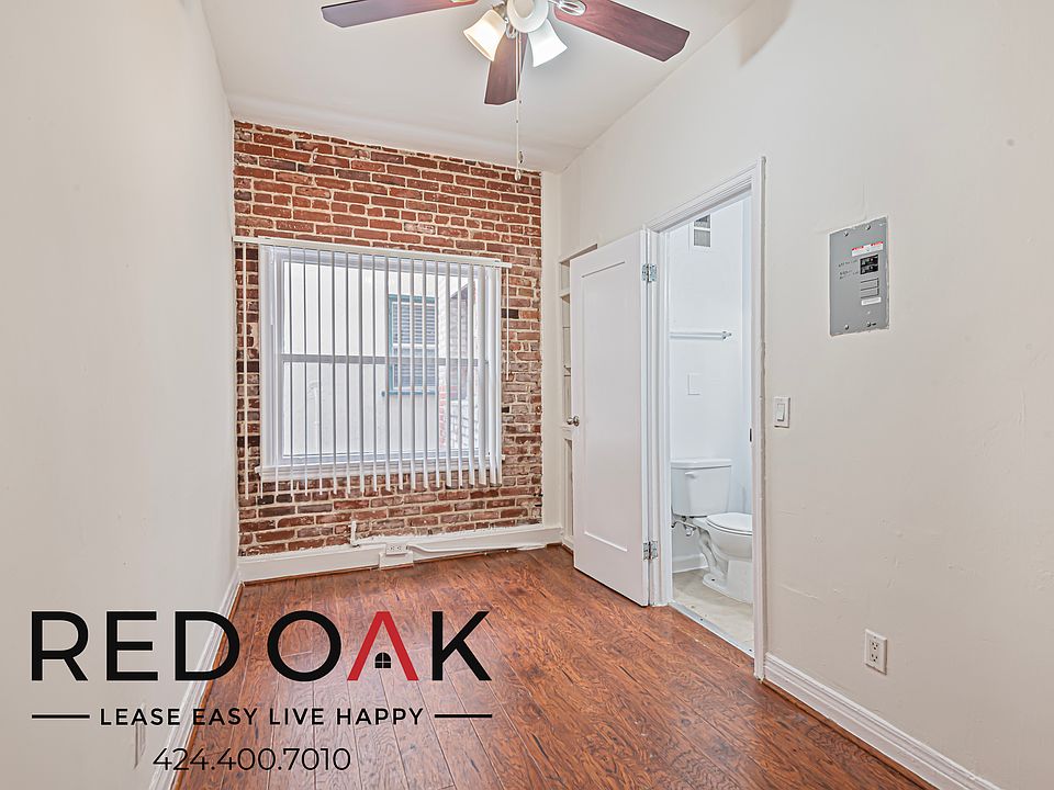 ~LOW DEPOSIT~ Cozy Bachelor Studio with Exposed Red Brick, Tons of Natural Light, Lovely Floors, Ample Storage Space, and On-Site Laundry ~ In Prime LA! *Move-In Special* **Resident will receive a reduced security deposit of JUST $500 as an incentive for move-in, on approved credit.* Home Highlights: Naturally Lit: Enjoy lots of natural sunlight, accentuating the hardwood-style flooring and spacious living area. Enhanced Privacy: Blinds on the windows let you control the light and offer additional privacy. Clever Storage Solutions: Stay organized effortlessly with in-unit organizing solutions. Temperature Control: A breezy ceiling fan will ensure that your home is always comfortable. Kitchenette: Featuring a stainless steel sink, minifridge and cooktop. Refreshing Bathroom: Enjoy a well-lit mirror, pedestal sink, and soaking tub with shower option. Inclusive Pricing: Enjoy having water/sewage, and gas services included in your rent. Easy On-Site Laundry: Adding convenience to your everyday chores. Pet-Friendly Policy: This community warmly welcomes your small, non-aggressive pets with a minimal monthly pet rent. Perfect Location: Relish the convenience of living near Koreatown and downtown LA, with USC, Exposition Park Museums, and the Staples Center just minutes away. Easy access to the 10 freeway ensures quick commutes to DTLA or the beach. Don't miss out on the opportunity! Available for an immediate move-in. LEASE TERMS: 1 Year Lease Pictures and descriptions are of EXACT unit Square Footage is approximate. Street Parking only. Showings may not be 1-on-1. All information must be validated on Red Oaks Website since 3rd party websites can feed incorrect information.