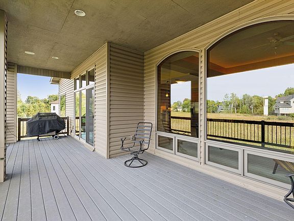 Welcome to this executive walk out rambler in the Sanctuary. You will appreciate the open feel with large windows overlooking nature. Beautiful sunroom to enjoy morning sunrises and a gourmet kitchen with granite countertops, pot filler and travertine tile floors. Large 300 sq. ft. covered porch with Trex decking. 36" doors on the main level, roll in shower, ramp in garage and set up for future elevator. Gas fireplace with stone wall, built in speakers throughout, lower level wet bar and many built ins. Large finished 3 car garage. Too many features to mention, this home is a must see.