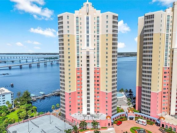 Experience resort-style living in Downtown Fort Myers. This 3-bedroom, 2-bath residence spans 1,408 sq. ft. and features split bedrooms, impact-resistant windows, and a private elevator that opens directly to your unit. The open layout flows seamlessly to a screened lanai with sweeping river views. The modern kitchen includes a pantry, cooktop, stainless steel appliances, and in-unit laundry. The master suite offers dual sinks, a separate tub and shower, and private lanai access. Luxury amenities include a riverside infinity-edge pool and spa, fitness center with sauna, theater, billiards, tennis and pickleball, BBQ area, bike storage, social lounge, concierge-style service, underground parking, extra storage, and landscaped walking paths. Cable, internet, water, sewer, and trash are included in the $3,126 quarterly condo fee. With flexible leasing, this condo also makes an excellent investment. Just minutes from the historic River District’s dining, shopping, and entertainment, and a short drive to RSW Airport, this is high-rise living at its finest.With flexible leasing, this condo is also an excellent investment. Just minutes to the historic River District’s dining, shopping, and entertainment, and a short drive to RSW Airport, this is high-rise living at its finest.