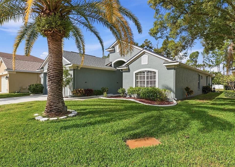 Welcome to this beautifully maintained pool home in the gated community of Key Vista, where residents enjoy a wide array of amenities, including a clubhouse, fitness center, tennis and pickleball courts, volleyball courts, a heated pool and spa, a playground, and numerous community events for all ages. As you enter the foyer, you’re greeted by high ceilings, an open floor plan, and abundant natural light. A spacious formal dining room is perfect for special occasions, while the kitchen offers casual dining and a breakfast bar ideal for entertaining. The living room flows seamlessly into a den/media room, which features newer luxury vinyl flooring and overlooks the pool. The kitchen, equipped with wood cabinets and granite countertops, provides both style and functionality, with two closet pantries and a nearby laundry room for added convenience. The split bedroom layout ensures owner privacy, placing the primary suite at the rear of the home with peaceful views of the pool. The en-suite bathroom includes a walk-in closet, large soaking tub, glass-enclosed shower, and dual-sink vanity. Two additional bedrooms share a full guest bath and offer vaulted ceilings and ceiling fans for comfort. Outside, a covered patio with ceiling fans provides a shaded space for relaxing or dining, leading to a screened pool area with ample room for seating and grilling. The solar-heated pool adds energy-efficient enjoyment, and the two-car garage offers generous space for vehicles and storage. Low monthly fees of $158 cover amenities, security, and basic cable/internet. Nearby, a 101-acre park offers nature trails, a boardwalk, an observation tower, fishing, and restrooms. This home is also conveniently located near the Tarpon Springs Sponge Docks, golf courses, marinas, restaurants, and shopping. Don’t miss the chance to own this stunning home in one of Holiday’s most desirable communities.