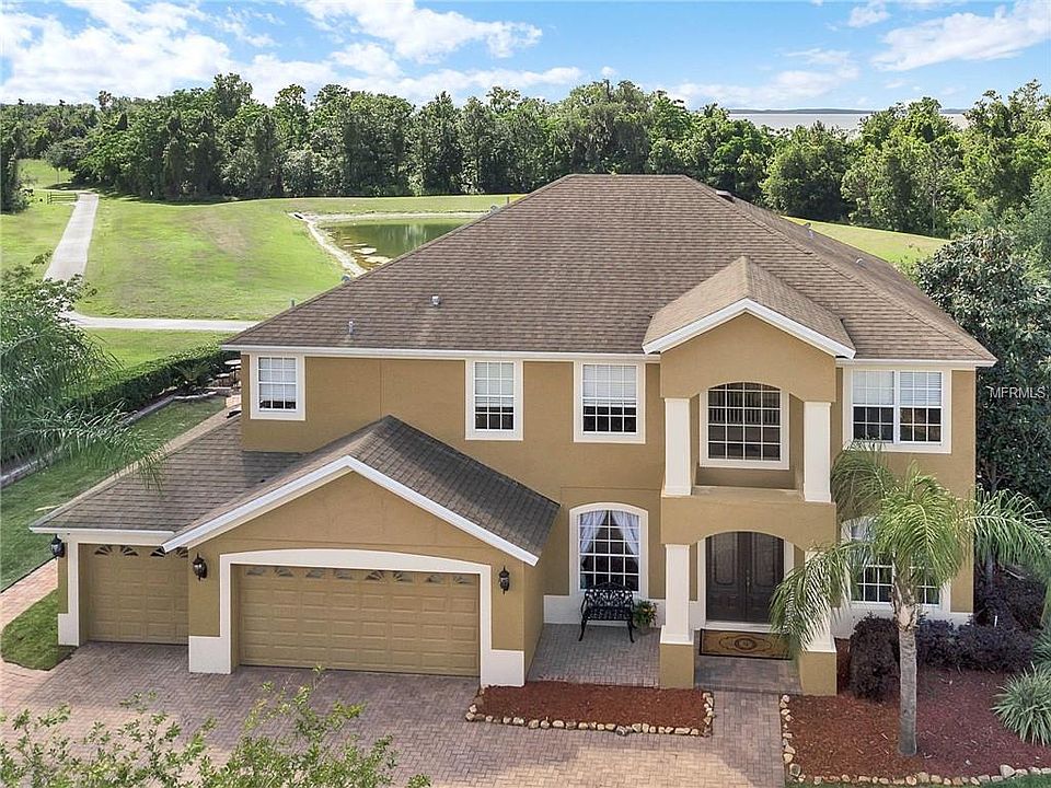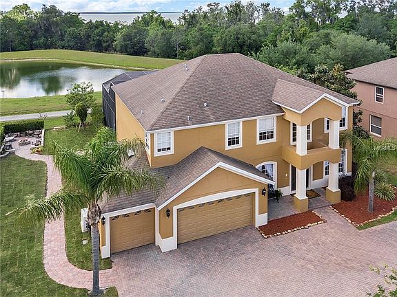 Private paradise tucked behind the gates of Westyn Bay. Situated on an over-sized corner lot this beautiful 5 bedroom, 4 bath home features resort style living in your own back yard. Spend your days relaxing in the lagoon style salt water pool, viewing evening sunsets from the master balcony overlooking Lake Apopka or roasting marsh mellows with family and friends around the outdoor custom fire-pit. As you enter the foyer you are greeted by the open formal dining and living rooms, which flows into an extended flex place perfect for a home office or den with additional closet storage. The chef's kitchen and open family room are designed perfectly for entertaining. The kitchen features spacious granite counter tops, double oven, cook-top with exhaust fan, walk in pantry, island and bar top seating. The family room is spacious with large pocket sliders that create an impressive indoor/outdoor living space. The home features double staircase that leads to the expansive second floor loft. The master suite is a show stopper with custom spa shower that offers tons of settings, spa bath, his and her sinks, large walk in closet and private balcony overlooking the pool and patio. The over-sized corner lot features a small putting green, extended brick paver driveway for additional parking and walking trail for the community directly behind the home. Easy access to 429, 414, Turnpike, etc.