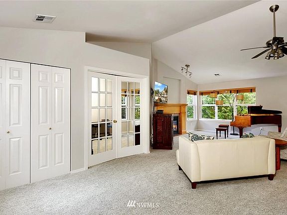 Southside living at its finest. This meticulously maintained 2 bed/1.75 bath condo has it all. Step inside to spacious living area, vaulted ceilings w/skylights, gas fireplace & covered deck. Granite kitchen counter tops & newer gas range. Large primary bed w/walk-in closet & double sinks in bath. Walk through french doors to nice bonus room/office w/custom bookshelf. Includes new W/D in unit. Equipped with full 2 car garage & off street parking. Close to Fairhaven, WWU, Chuckanut & many trails.