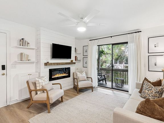 Get ready to fall in love with this completely renovated 2 bedroom, 1 bath condo that has style, charm and convenience all wrapped up in one! Whether you're looking for an investment property or a coastal retreat, this one's a showstopper! Here's what makes it special: brand new neutral luxury vinyl plank floors throughout, the kitchen boasts beautiful quartz countertops, penny tile backsplash, gold finishes, stainless steel appliances, and bright white cabinets. Freshly painted walls, smoothed ceilings and upgraded lighting make for a bright, airy feel and the custom shiplap, wood paneling and a cozy electric fireplace add the perfect touch of character. The bathroom was beautifully renovated with modern, stylish finishes. Spacious primary suite with custom closets. New plumbing, newer HVAC and water heater. Being sold fully furnished - just bring your flip-flops and toothbrush. Ideal for those seeking a blend of comfort, style and a prime coastal location just minutes from the beautiful beaches of Amelia Island and downtown Fernandina Beach. Don't miss your opportunity to own this one-of-a-kind Forest Ridge condo, perfect for your next investment or your own slice of paradise.