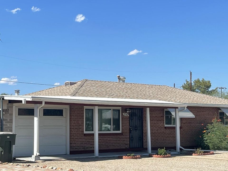 3 bedrooms, 1.5 baths, 1 car garage with additional storage area. Ceiling fans in all rooms, covered back patio.Nice central located cute home. Large size of lot front and backyard, very low maintenance home. Large size cooling in Arizona Room. No HOA.