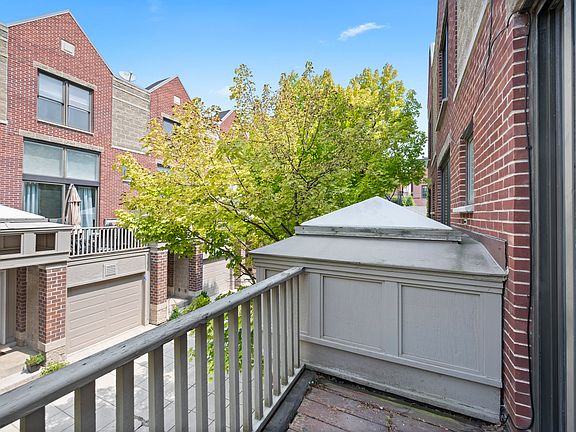 Lincoln Park townhome on a lovely leafy street lives like a single-family home with three levels of well-appointed space, two outdoor areas, and an attached one-car garage. The main floor offers a versatile bedroom/office/den, full bath, stacked new-in-2024 LG washer & dryer, and sliders to the private patio. The light-flooded second level features a living/dining area with woodburning fireplace, built-ins, sliders to a balcony that nicely accommodates a grill, and a granite/stainless kitchen loaded with storage. Two generous bedrooms and a shared bath form the upper level. Recent improvements include a subway-tile backsplash in the kitchen & a new stainless LG fridge installed in 2021, a 50-gallon hot water heater in 2023, and a complete interior repaint in 2025. Fabulously located in a quiet enclave close to everything, with easy access to several bus routes and the brown and purple lines. Prescott Elementary and Lincoln Park High schools.