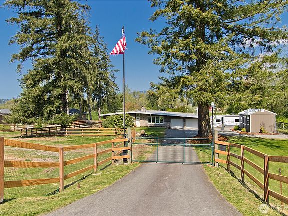 Experience true pride of ownership on this beautifully updated one-story equestrian property set on 2.32 fully fenced acres with gated entry and stunning mountain views. The barn includes two 12x12 matted stalls with Dutch doors, paddocks, and full interior/exterior lighting—perfect for your horses. Inside, enjoy 3 bedrooms, 2 bathrooms, a bright, open layout with abundant natural light, stainless steel appliances, and a spacious 2024 deck ideal for entertaining. Upgrades include a new roof, furnace, heat pump, 200 amp electrical panel, and a BRAND NEW septic and drainfield. Wired for a generator. New shed 10x20 w/flooring AND MORE! Country living at its finest! Tahoma School District.