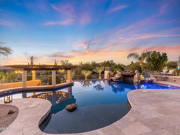 Come tour this entertainer's dream home with open living spaces, modern kitchens, and a resort backyard with a first-class guest house! Situated on a one acre quiet cul-de-sac lot in Saguaro Highlands, it is one of the few properties with natural area open space behind the lot that offers great privacy! This home offers a state of the art smart home package. Control4 delivers a truly intelligent smart home experience that makes life more convenient, safe, and enjoyable. With smart pads in the main suite, kitchen, garage and casita, you will always be conveniently in control of your home like TV's, lights, window coverings and more! In the garage you will find a ready to go EV charger! Recent updates include a new AC unit, irrigation and landscape lighting completed in 2024. Outdoor entertaining will be a dream in the spectacular backyard which delivers a custom Jack Nicklaus Series Putting Green, a huge covered patio, an expansive sparkling pool with custom built spa, water features and a swim-up bar, a built-in BBQ and gorgeous landscaped gardens.