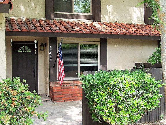 Desirable Rondell Community with tons of park-like green space! Designer perfect! Spacious 3 bedroom + 2 bath townhouse! Large front patio plus fenced, flag-stone rear patio! Great condition! Double glazed windows! Central AC and heat include a whole house air filtration system with built-in ultra-violet germicidal protection, runs 24/7! Custom kitchen cabinets with granite counters! Built in stainless steel microwave, oven range and side-by-side refrigerator included! Flat ceilings throughout with recessed lighting! Attached 2 car side-by-side garage has walls of storage cabinets! Full size washer and dryer are included! Custom crown and base molding! Raised panel doors with lever style hardware! Bathroom with stone and tile and thick-glass custom shower enclosure with bench! Built-in linen cabinet! Built-in bookcases! Reasonable HOA dues include: pool, spa, tennis court, water and trash! Blue Ribbon Las Virgenes School district!