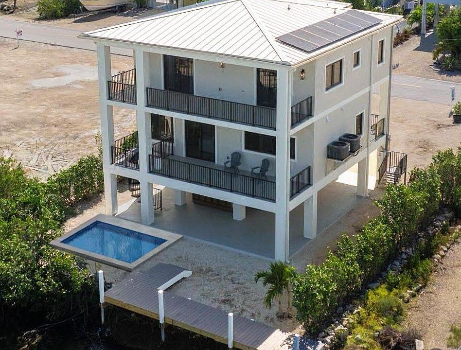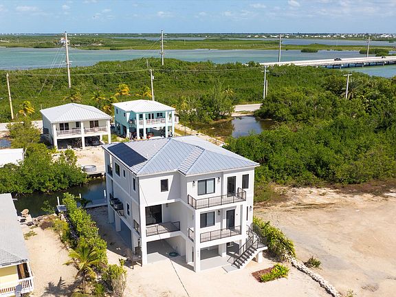 NEW CONSTRUCTION - COMPLETED 2025 & MOVE-IN READYWelcome to your brand-new coastal retreat on Ramrod Key. This luxury 4-bedroom, 3-bath residence delivers world-class construction, refined finishes, and effortless indoor-outdoor living in one of the most desirable boating neighborhoods in the Lower Keys.Built with solid CBS construction, a metal roof, and impact-rated windows & doors, this home offers long-term durability, energy efficiency, and peace of mind. Step inside to an open-concept layout bathed in natural light, highlighted by porcelain tile floors, a floating staircase, and elegant designer fixtures.The chef-inspired kitchen features quartz countertops, shaker cabinetry, and stainless steel appliances, creating a perfect setting for entertaining and everyday living. Spacious living and dining areas flow seamlessly to expansive terraces overlooking the water, capturing tropical breezes and golden coastal light.Premium Outdoor Living-Soon to be installed and included in the price (credits available if purchased as-is):Enjoy direct boating access from your brand-new 150 sq ft composite dock, just minutes from world-renowned Looe Key Reef, sandbars, and backcountry fishing grounds. Whether diving, fishing, island cruising, or sunset boating, this location is unmatched.Sustainable Coastal Living-This Green Certified home includes a 3 kW solar system, water cistern, and greywater reuse system, combining modern luxury with environmental responsibility and long-term utility savings. Additional features include a garage and large ground-level storage area ideal for kayaks, paddleboards, fishing gear, and boating equipment. This is a rare opportunity to secure a brand-new luxury residence in a prime Keys waterfront community at a time when ROGO permits are increasingly limited. There is a pool and outdoor kitchen optional upgrade for an additional price. Call for your showing today!