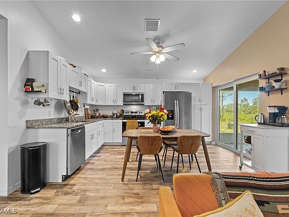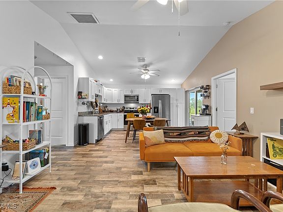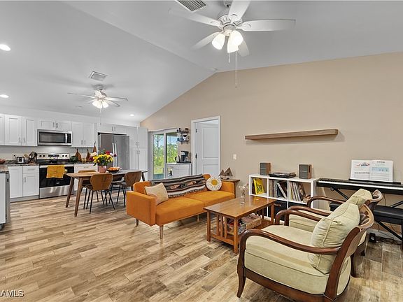 For Lease. | Imagine winding down each day in this laid-back 3-bed, 2-bath, 1,214-sqft home tucked away on a quiet, country-style lot built in 2021 with all the modern comforts you need. The open living area, with its cathedral ceilings and wood-look tile floors, flows into a kitchen that makes sipping your morning coffee or rustling up weekend brunch a pleasure, thanks to granite counters and stainless steel appliances. You'll love the split-bedroom layout: your roomy master suite has dual walk-in closets and a private bathroom with a tiled shower and dual sinks. Impact-resistant windows and doors (plus a reinforced garage door) give you peace of mind, while the whole-house reverse-osmosis water system keeps things fresh. The two-car garage and generous yard bordering vacant lots and a ranch offer plenty of space and privacy. Out here you're minutes from Punta Gorda shops and restaurants, Cape Coral waterways for boating, and some of Southwest Florida's best golf, yet every evening feels like your own little retreat.