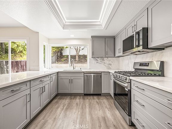 Welcome to Roripaugh Hills — A Home That Truly Has It All. Roripaugh Hills offers a 4-acre park site with a community pool, spa, and two tennis courts. Open daily from 6 a.m. to 10 p.m., the pool is heated from early spring through fall—perfect for year-round enjoyment. This home delivers confidence, comfort, and convenience with a true move-in-ready design where every detail has been thoughtfully upgraded. Located within walking distance of award-winning Chaparral High School and the Promenade Temecula Mall, plus just minutes from the I-15 Freeway, Temecula Wine Country, and Old Town, this property is ideally positioned for both commuters and those who love local lifestyle. Step through the double-door entry into a freshly painted interior with soaring ceilings, modern chandeliers, and a sweeping staircase with custom-detailed bullnoses. All-new dual-pane windows brighten every room. The kitchen is a true centerpiece, showcasing custom cabinetry, NEW Quartzite natural stone countertops, NEW stainless steel LG appliances, and a designer NEW sink and NEW faucet. The adjoining family room features a quartzite stone NEW fireplace surround, creating an inviting flow for gatherings and daily living. Upstairs, every bedroom is enhanced with NEW fandeliers and custom closet shelving. Bathrooms have been fully renovated with NEW marble vanities, NEW modern faucets, NEW elegant tilework, and new plumbing throughout. Additional updates include NEW interior doors, GFCIs, NEW toilets, and NEW exhaust fans. upgrades ensure peace of mind with a brand-NEW HVAC system, NEW AC UNIT, NEW thermostat, and NEW water heater. Outside, enjoy a two-car garage, patio overlooking a pool-sized backyard with fresh sod, and drought-tolerant landscaping with decorative stone and a waterfall entry feature.