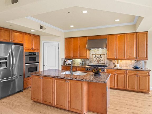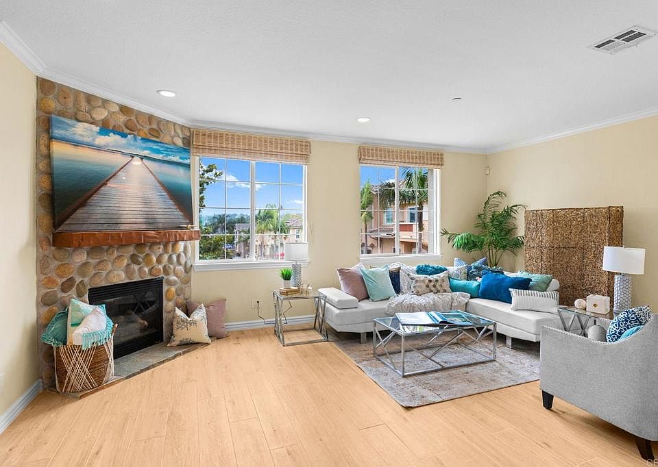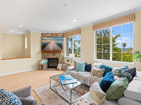 Welcome to coastal luxury living in the heart of Carlsbad Village, where ocean views and beach breezes greet you each day. This rare townhome offers not just a home, but a lifestyle—only two blocks from the sandy shores of Carlsbad Beach. Imagine waking up to the sound of waves and stepping out onto your private balcony to soak in breathtaking views of the Pacific. As you enter, you're welcomed by two expansive living spaces bathed in natural light, each thoughtfully designed to blend elegance with comfort. The living room, framed by large windows, features a stunning floor-to-ceiling stone fireplace—perfect for cozy evenings by the fire. It seamlessly connects to a bright breakfast area, where you can enjoy your morning coffee as the sun rises. The family room, with its open flow into the dining area, leads you to a spacious terrace, where you can host gatherings or simply unwind with the ocean as your backdrop. At the heart of the home is the gourmet kitchen, designed for both function and style. With tray ceilings, granite countertops, a large center island, double ovens, and a walk-in pantry, it’s a space that invites you to cook, create, and entertain. Upstairs, the master suite is your private retreat, with its own ocean-view balcony offering stunning sunset vistas. The ensuite bathroom feels like a personal spa, complete with double sinks, a walk-in shower, and a soaking tub where you can unwind after a day at the beach. A spacious walk-in closet provides ample storage for all your needs. The additional bedrooms are just as inviting—bright, spacious, and featuring plantation shutters for a touch of elegance. The updates throughout the home, including bamboo window shades in the living spaces, crown molding, recessed lighting, and fresh new carpet and interior paint, create a polished and modern feel. Every detail has been considered for comfort and style. With an attached two-car garage offering extra storage space and a full-size laundry closet, convenience is at your fingertips. Located in the sought-after Village By the Sea community, you’re steps away from Carlsbad’s best restaurants, shops, parks, and, of course, the beach. This is more than just a home; it’s your gateway to the ultimate coastal lifestyle. Don’t miss the opportunity to make it yours and experience Carlsbad living at its finest!