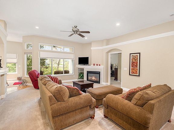 - Features: Fireplace(s), Carpet Flooring, Window Treatments, Built-in Features, Ceiling Fan(s), Recessed Lighting
