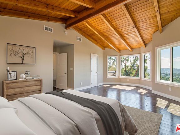 Positively stunning and completely remodeled Los Feliz home with guest house and the best views from a home, I've ever seen. This Mediterranean home, is just steps away from the Griffith Park Observatory. Located at the top of Glendower Ave., you will find a very tasteful and thought-out remodel using only the finest of materials. There are 2 master suites up, 2 bedrooms down, plus the guest house. The guest house was remodeled with a stainless kitchen, H/W flooring and tiled bathroom. The main house, has new beautiful H/W floors, tiled bathrooms with quartz counters, new A/C and heating, (operated w/the Nest controls), beamed ceilings, recessed lights, step down living room, (with decorative fireplace). The kitchen is all new, with stainless appliances an island, counter tops w/Quartzite, Bosch oven, cooktop and dishwasher. Garage has been updated w/storage and electric abilities for your electric cars. The yard, along with its views, has a deck that could hold over 100 people.