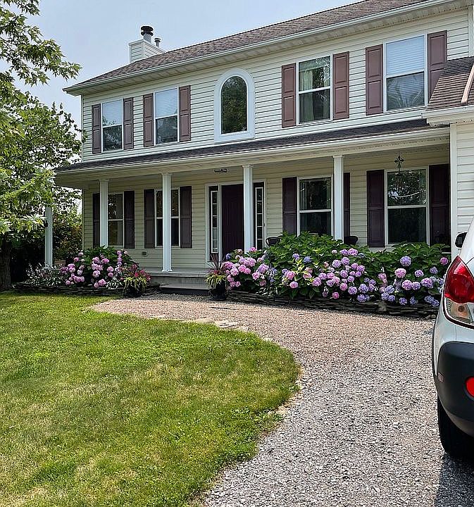 This two story country colonial sets on over 1 acre of land, offers 3 bedrooms, 2-1/2 baths, a deep maple kitchen with appliance package. Great room features wood burning fireplace with gas starter and double sliding glass doors to enjoy the view of the spacious backyard. Great room and bedrooms are carpeted, kitchen and bathrooms tiled while the dining has natural oak hardwood floor. Stamped concrete patio landscaped for privacy. New hot water tank 2020. 10’ x 16’ Amish made shed. Maytag washer and dryer. 2-1/2 car garage with work bench. Primary bedroom features walk in closet, jacuzzi tub, and stand up shower. Septic system. Showing by appointment only for pre-qualified with finance letter. Starting 7/26/21