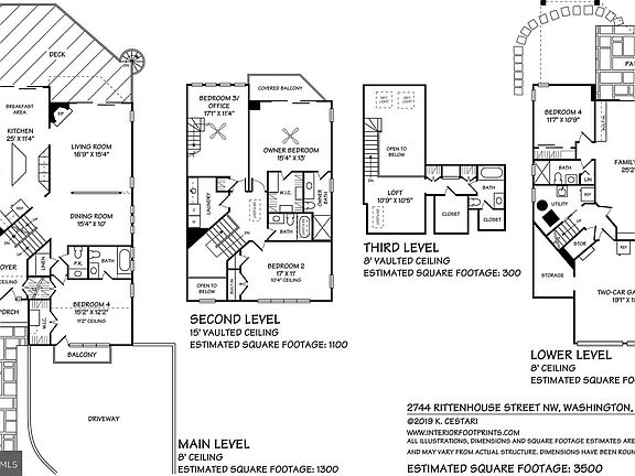 3500 square feet on 4 nicely finished levels flooded with light from every angle plus a rare 2 car garage and a deep, private, fenced lot all in the heart of Chevy Chase, DC! The inviting foyer with large coat closet and split stairs leads you up to the main level featuring an open dining/living area with fireplace, table space Chef~s kitchen with island and top of the line stainless steel appliances (Viking 6 burner range with 2 ovens, Subzero fridge and Bosch dishwasher) and powder room. The kitchen and living room flow effortlessly to the rear deck through 2 sets of sliding doors. The main level is completed by a bedroom with front balcony, 2 large closets and an en-suite full bath. The 2nd level boasts 3 additional bedrooms (one with a rear balcony and en-suite full bath), 2 renovated full baths, a laundry station and fixed stairs to the finished loft with storage and another renovated full bath. The walk out lower level boasts the family room with slider to the rear patio, 5th bedroom, 5th full bath, storage and door to the 2 car garage. Two balconies, a rear deck and lower patio space are multiple areas for you to enjoy the outdoors. Steps to Rock Creek Park and Metro bus at the corner!