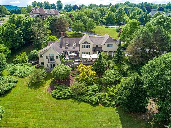 Significant Lakefront Finger lake Estate in Skaneateles named #1 Small town in America as one of the cleanest Lakes in the Country with highly rated schools, restaurants, 30 minutes from Syracuse University, and it's renowned medical center and international airport and only 5 minutes from Skaneateles Aero Drome accommodating King Air & Pilatus planes. Great Family compound includes 245/ 280' lakefront with boathouse,permanent dock and multiple leisure areas along with 6.29 acres of beautiful landscaped rolling country acres descending to a beautiful level frontage. Includes a pristine "field of dreams" tournament quality har tru tennis court with trellis seating area and half bath along with playing field for family sports and playground area all with spectacular Lake views. This 5 bedroom 5 full 3 half Bathrooms offers 4178 sq.ft. home plus a 800 Sq.ft. finished walk out basement plus a generous outdoor dining and living area with stunning views, great room and office. There are 3 contiguous houses for staff/guests that are also available for sale by seller. William Henry Seward said it best about Skaneateles "The most beautiful body of water in the world. "