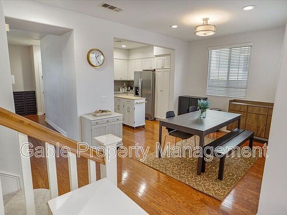 This beautifully maintained property offers 3 bedrooms and 3 bathrooms in the highly desirable Creekside community. The home features a spacious living room with wood flooring throughout (no carpet) and abundant natural light. The upgraded kitchen includes white cabinetry, recessed lighting, stainless steel appliances, a window over the sink, granite countertops, and a stylish subway tile backsplash. Adjacent to the kitchen is a dining area with an upgraded light fixture and a cozy family room featuring a ceiling fan, recessed lighting, and a tiled fireplace. A sliding glass door leads to the inviting backyard area, and an attached two-car garage provides convenient access.