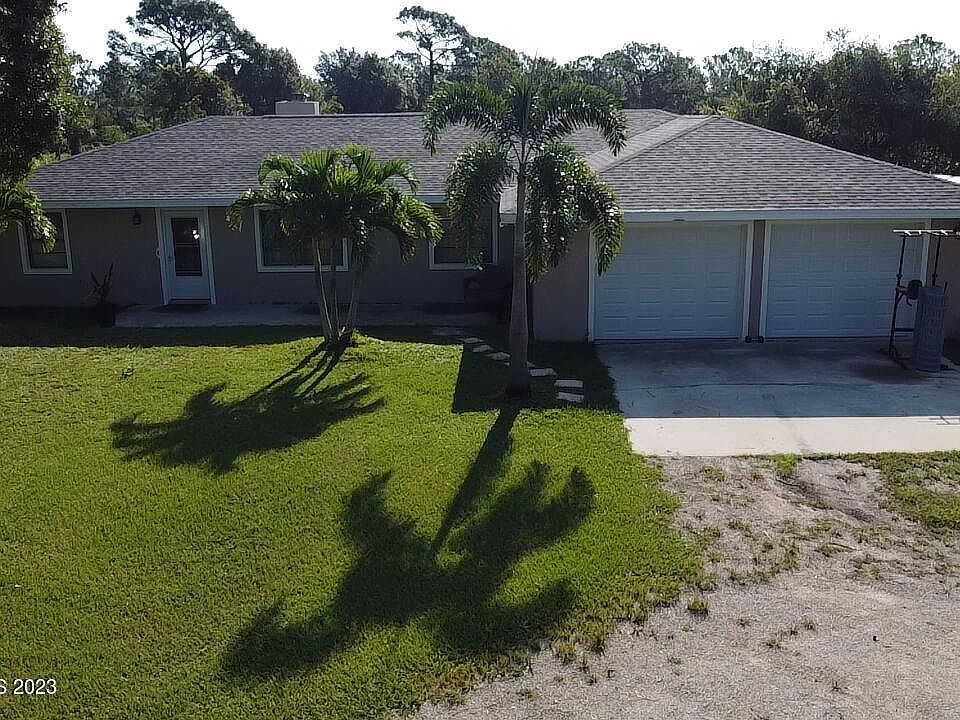 Located on 2 1/2 acres, there is plenty of room to expand, add a detached garage or large workshop. Lots of privacy with tropical landscaping, beautiful, stocked pond and dog run. The newly remodeled kitchen is large and perfect for all of your family entertaining. All new Whirlpool appliances and granite throughout. Both bathrooms have been completely remodeled as well.