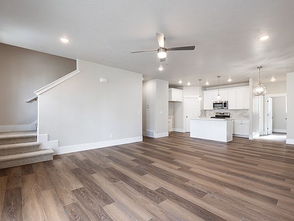 JUST FINISHED--Three-bedroom Soho floor plan at The Ridge at Spanish Fork. The Soho has the largest primary suite out of all of our townhomes. The lower level includes a family room and a deep two-car garage. The second level offers an open layout with kitchen, dining, family room, half bath, large laundry, and a versatile bedroom/office. The top floor has the oversized primary suite, plus another bedroom and full bath. The Ridge is located on the east side of Spanish Fork with sweeping mountain and valley views. Community amenities include a clubhouse, fitness center, indoor/outdoor pool, new pickleball courts, and a dog park. Convenient location near shopping, dining, schools, I-15, and Spanish Fork Canyon. Two, three, and four-bedroom floor plans are available with new inventory ready now. We also work with investors. Tour the model home today and ask about our current incentives!