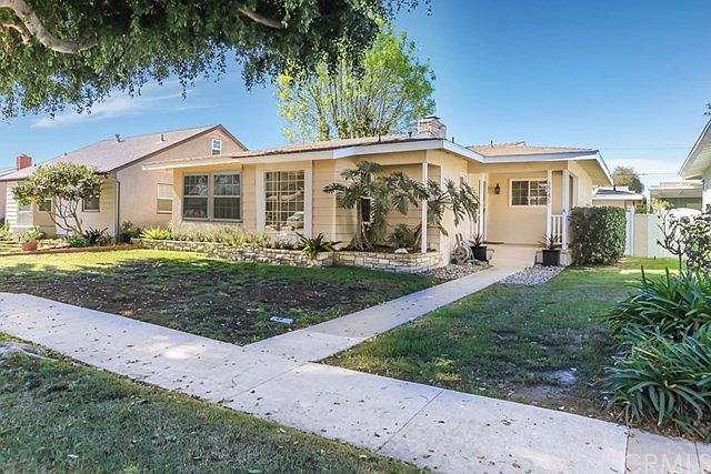 You will fall in love with this home the minute you drive up the tree-lined street and walk through the front door. Very open floor plan with beautiful high end laminate wood floors throughout the home. Wall of windows in the living room makes this home extremely light, bright and cheery. Spacious remodeled kitchen with tons of cabinets that includes all the appliances (dishwasher, refrigerator, gas stove, microwave). Beautiful stone fireplace in the living room, recessed lighting, custom paint and window coverings throughout and smooth ceilings! Spacious master suite with gorgeous, recently remodeled bathroom with double sinks and beautiful walk-in shower with double shower heads. Really lovely. Main bathroom has also recently been beautifully remodeled. Home has forced air heating & central air conditioning, double pane windows and roof just over a year new. New interior doors, custom blinds, custom paint all add to the ambiance of this charming property. The private back yard is set up for barbecuing and entertaining. Living room area opens out onto a brick patio and covered eating area. Double detached garage in back. A great place to sip your coffee in the mornings or beverage in the evening. Walk to highly sought after Emerson Grade School, Prisk Elementary and Millikan High. Hackett is one of the prettiest streets in east Long Beach with the canopy of trees. Great location and superb home.