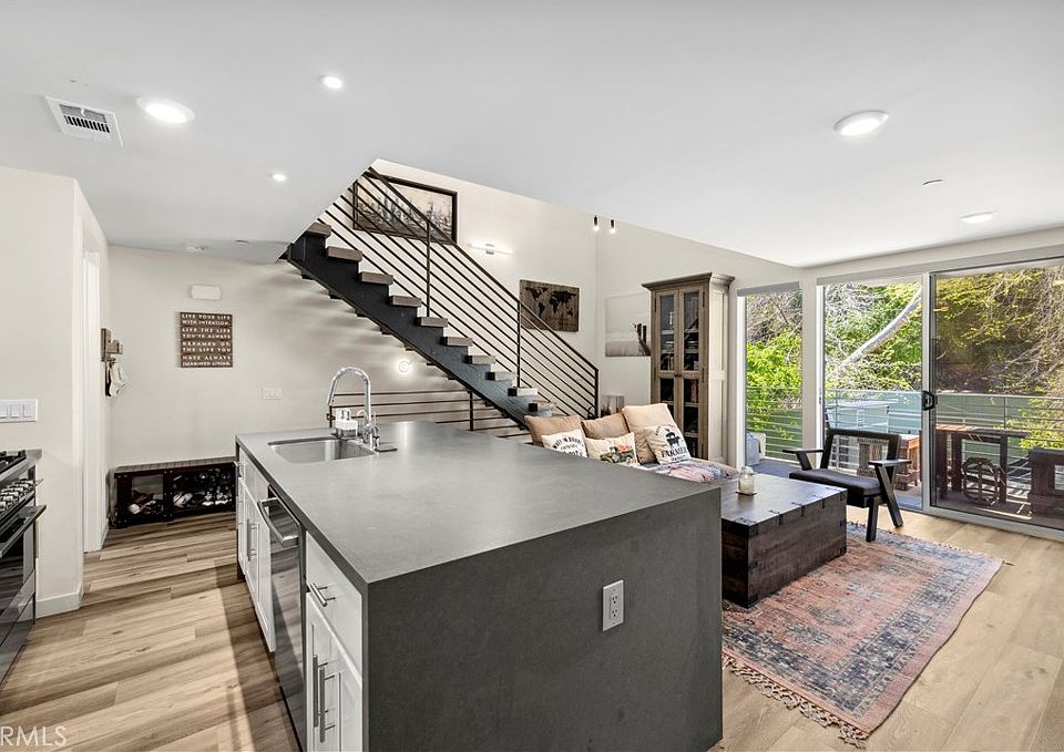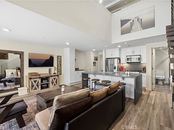 Exceptionally rare, undeniably luxurious, and one of the only newer-construction residences of its kind in Laguna Beach, this modern, open and light-filled condo offers a versatile live/work design at The Sheds in the heart of Laguna Canyon. Artists, including fashion, graphic and web designers, urban planners, architects and more, will find the space to be an ideal environment for creativity. The talents of Laguna Beach-based Horst Architects, Inc. are on display throughout the three-level loft-style floorplan, which includes two covered parking spaces on the first floor, main living areas on the second, and an office with sunny balcony on the third. Enjoy two ensuite bedrooms with walk-in closets, two baths, and a spacious living room with private deck. Opening directly to the family room, the high-end kitchen features a large dual-waterfall island with bar seating, quartz countertops, white Shaker cabinetry, a farmhouse sink and top-tier stainless steel appliances. Floating staircases, vaulted ceilings, hardwood flooring, large windows and glass doors, and high-end finishes and fixtures place this live/work condo and its three neighbors at The Sheds in a league of their own. Views of Laguna Canyon’s natural beauty are enjoyed from every floor, and its location places residents within minutes of the Laguna College of Art and Design, Laguna’s postcard-perfect beaches, hiking and biking trails, and village galleries, cafés, restaurants, clubs and shops.