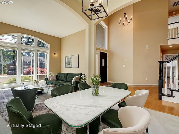Elegant David Morris built home in Holly Hills. This beautifully maintained 4 bedroom, 2 1/2-bath home offers 2,676 sqft of thoughtfully designed living space. Featuring soaring 11-foot ceilings and an abundance of natural light, the open-concept layout is enhanced by hardwood floors and expansive windows. The remodeled kitchen is a chef’s dream, complete with silestone quartz countertops, a gas cooktop island, wall oven and microwave, and ample cabinetry. The main-level primary suite includes a luxurious bath with a jetted soaking tub, offering the perfect retreat. A second bedroom on the main floor functions perfectly as an office or guest space. Enjoy the spacious laundry room with a utility sink and built-in storage, plus a generous 3-car garage. The private backyard is ideal for relaxing or entertaining, featuring a patio and tranquil water feature. Additional highlights include a newer roof, fresh exterior paint, and access to Camas schools.