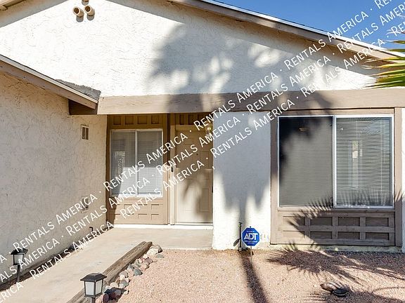 Beautifully updated ranch-style home with a sparkling pool, spa, and patio. Soothing palette, neutral tile floors, ceiling fans, lots of natural light, & spacious eat-in kitchen features white cabinets, SS appliances, & stylish counters. Generous-sized bedrooms, ample closets, plush carpet, & pristine baths. Grand primary retreat offers mirrored closet doors & a private en suite. Easy access to shopping! This desert gem will not disappoint Fees: One-Time Admin Fee: $300. 1% Service Fee. Refundable Pet Deposit: $300/Pet, if applicable. Resident Benefits Package: $39/month. Helping Heroes Discount Available! Cats Allowed Dogs Allowed Garage Pets Allowed