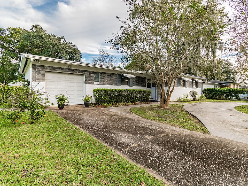 Well maintained 3 bedroom 2 bath home with a mid century feel located in the Southside of Jacksonville. Home has great curb appeal with attractive circular driveway for parking convenience. Newer wood look laminate plank flooring throughout entire home, newer Heating and Air system, one car garage with washer and dryer hook-up, bathrooms have updated vanities and white ceramic tiled floors, ample closet space, private Florida room with concrete patio with lean to type covering, exceptionally large private backyard with garden shed to enjoy all of your outdoor activities. This home is a true gem and is in close proximity to parks, schools, restaurants, shopping, and downtown Jacksonville. Buyer to verify square footage.