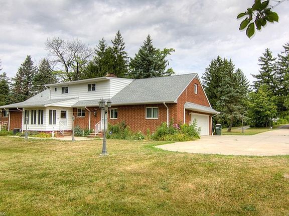 Remarkable opportunity on nearly 4 ACRES in Orange! 5 bed, 3 and 1/2 bath. Brick exterior in excellent shape. Newer roof, windows, and furnace. 3 beds and 2 full baths on first floor, including master suite with attached bath and walk in closet. Huge main hallway bath. Living room, dining room, eat-in kitchen, sunroom, and laundry room with unique half bath complete the first floor. Hardwood floors could be fantastic! Upstairs is a 3rd full bath, bedroom, bonus bedroom, and wood paneled loft area. Basement has spacious rec room plus utility/storage area. Updated electric panel is wired to accommodate a generator (generator not included). Concrete driveway with extra parking pad and room to turn around. Move right in or bring your own personal touch. Incredible lot is partially bordered by neighboring woods. Easy commute to I-271! Sold as is.