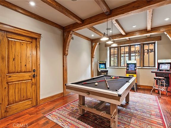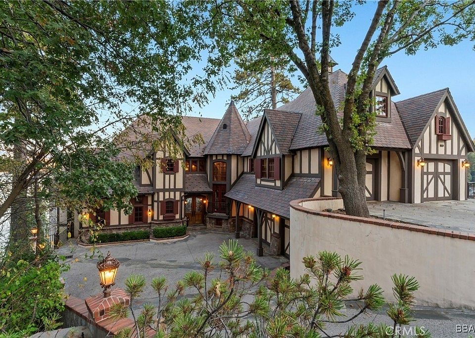 Amazing Value. La Créme de la Créme! Beautiful Lakefront Lodge Chateau In the Exclusive Gated Community of Rainbow Point, Lake Arrowhead, CA This luxurious, finely crafted, and superbly accentuated crown jewel estate is majestically perched on Rainbow Point’s most exclusive and desirable lakefront parcels. Enjoy massive shimmering lake and ridgeline views from virtually every room! The home features countless custom amenities such as 8 masterful fireplaces, dual kitchens accented with top-of-the-line appliances, and magnificent tile, quartz, and stone work throughout. There are 7 spacious en suite bedrooms, all with water views as well as 2 bunk room and/or media room. One of the most impressive rooms is the soaring and grand great room with irreplaceable, hand crafted and masterful architecture that sets the wide open waterfront stage with it's 3 story hand hewn distressed trusses, floor to ceiling windows and fireplaces, custom brass fixtures, with modern and timeless curation, Positively 5 star living amenities! At mid level there is a finely appointed gentleman’s lounge with fully self contained bar and wine rooms, adjacent is well appointed billiard and game rooms. On the lower level at lake's edge is a second fully self contained kitchen, bar, den, fireplaces, multiple and intimate living spaces are flexible for personal, extended, and even corporate living. And a full house elevator provides ease of access throughout! Step out onto sweeping decks and patios and meander down to rose and native gardens and a water stream with an enchanting path which extends down to a private covered dock slip and lakeside dock house with fireplace, all on the extensive shoreline. Aptly inscribed on one of it’s eight majestic fireplace mantels is the phrase “Vie bien m’aime beaucoup souvent ri”, which means simply live life to the fullest, eat well, laugh often, and love abundantly! Simply the best!