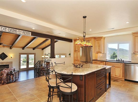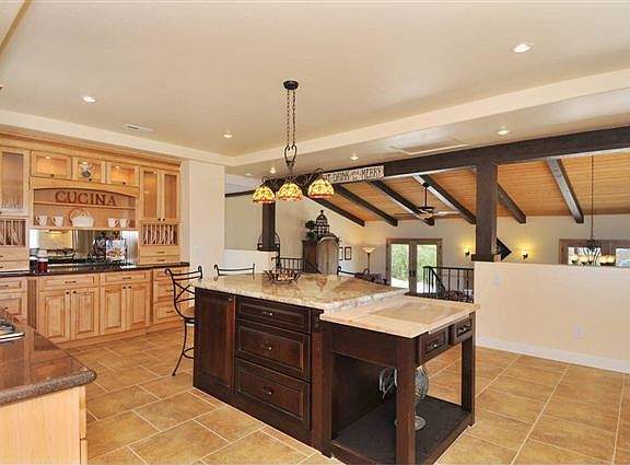 Beautiful Valley Center home with panoramic views. This homes handsome architecture with its deep rich colors, dramatic lines, wrought iron accents and designer touches makes this home an extraordinary show piece. This 3,114 square foot home is beautifully designed, offering a stunning kitchen in complete Tuscan style complete with granite counters, glazed Maple cabinets, center island, chopping block, built in buffet and stainless steel appliances.