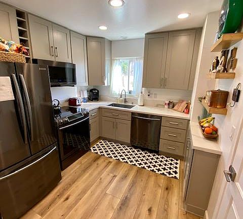 Beautiful, completely remodeled, townhouse in quiet community, only 15 minutes to the beach. Features include new floor, paint, appliances, redone kitchen and bathroom. Open concept with recessed lighting throughout making this space warm and inviting. Master offers a large closet with access to the redone deck. Shopping and hiking trails nearby. Owner pays for water. Renter is responsible for gas, electric, cable and renters insurance. No smoking allowed. Sorry, no pets.