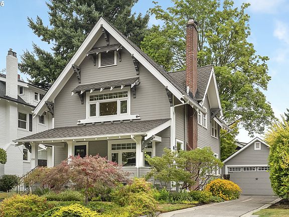 Sitting gracefully beneath Irvington’s lush green canopy, this timeless 1909 Craftsman blends thoughtful updates with enduring period charm. From box beam ceilings and French bi-fold doors to hardwood floors throughout, classic details radiate from every corner. Bathed in natural light, the main level features a formal entry, spacious living and dining rooms, and custom built-ins that add both function and character. A cozy gas fireplace anchors the space, while the remodeled chef’s kitchen boasts granite countertops, stainless steel appliances, a large island, and ample cabinetry—perfect for both everyday living and entertaining. A convenient mudroom adds utility and storage. The coveted floor plan offers three generously sized bedrooms upstairs, plus a charming sunroom—ideal as a home office, playroom, or sun-drenched studio. The unfinished basement offers high ceilings and incredible potential for future expansion.Outdoors, the private hardscaped backyard is perfect for easy entertaining, and the rare two-car garage provides extra storage. Elevated above the street, a welcoming front porch invites you to relax and take in the peaceful surroundings. Updates include seismic retrofitting, radon mitigation, newer furnace, central A/C, and fresh exterior paint. Located on a quiet, tree-lined stretch of NE 22nd Avenue, this home is surrounded by everything that makes Irvington so beloved—parks, top-rated schools, local cafés, and some of Portland’s favorite restaurants are just moments away. [Home Energy Score = 1. HES Report at https://rpt.greenbuildingregistry.com/hes/OR10240360]
