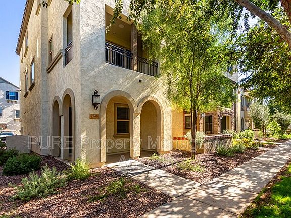 Welcome to this beautifully designed 3-bedroom, 2.5-bathroom townhome in the heart of Gilbert! This modern residence offers an open and inviting floor plan highlighted by a stylish kitchen featuring sleek cabinetry, stainless steel appliances, granite countertops, and a spacious islandperfect for meal prep or casual dining. The bright living area flows seamlessly to a private balcony, ideal for enjoying your morning coffee or evening sunset. Upstairs, the primary suite provides a relaxing retreat with a walk-in closet and an ensuite bathroom with dual sinks. Tile flooring enhances the main living spaces, while plush carpet adds comfort to the bedrooms. Additional features include a convenient laundry area and a two-car garage offering ample storage. Situated in a well-maintained community close to shopping, dining, parks, and top-rated schools, this Gilbert townhome perfectly combines modern style, functionality, and an unbeatable location.