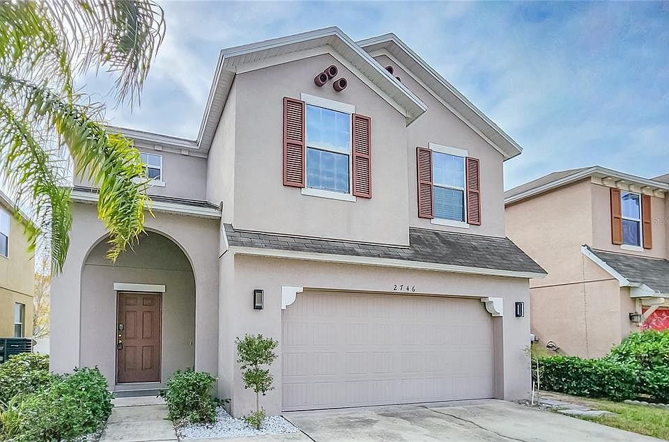 Under contract-accepting backup offers. Short Sale. SHORT SALE , NO CDD and Very low HOA fee, near Disney perfect for Airbnb or long term rental. Welcome to this charming two-story home is nestled in the desirable Campbell Cove Community in Kissimmee, FL and offers plenty of space and comfort for your family. With 4 spacious bedrooms, including a large owner’s suite, and 2.5 bathrooms, it’s perfect for families of all sizes. As you step inside, you’re greeted by an impressive entryway that leads into an open-concept living area, seamlessly connecting the living room, dining area, and kitchen. The kitchen features stainless steel appliances and a newly installed custom pantry, making it a dream for home chefs. Upstairs, the oversized owner’s suite boasts a private bath with a luxurious soaking tub and a large walk-in shower. The secondary bedrooms are generously sized, and the conveniently located upstairs laundry adds to the home’s functionality. Step outside to enjoy your lanai and backyard, perfect for relaxing or entertaining guests. This home also includes a 2-car attached garage and sits on a low-maintenance lot. Located just minutes from theme parks, golf courses, shopping, and dining, this home offers both comfort and convenience. The community is pet-friendly and has low HOA fees of just $175 quarterly. With its modern design and prime location, this home is ready for you to make it your own!