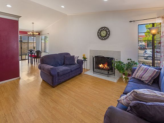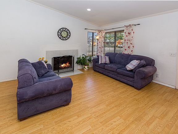 Adorable cul-de-sac 2 bedroom, 2 bathroom, 936 Sq. Ft. home in the New American tract in Saugus. The light and bright living room features a beautiful tile fireplace and recessed lighting. As you continue into the kitchen/dining room area, you will be greeted with more natural light coming through the slider that exits to the backyard and the large window over the kitchen sink. There is a pantry and plenty of storage for food and dishware. The open concept of the living room and kitchen make it perfect for entertaining family and friends. Laundry is conveniently located indoors. The over-sized secondary bedroom is large enough to be a second master with a connecting door that enters into the guest bath. The master bedroom has high ceilings, a large mirrored closet, and a sliding glass door that goes out to the covered patio where you can enjoy your morning coffee. Large 2-car garage with plenty of cabinets and shelving. Enjoy the privacy this corner lot provides. With Saugus High, lots of shopping, Central Park, and plenty of walking nearby, this home will sell fast!