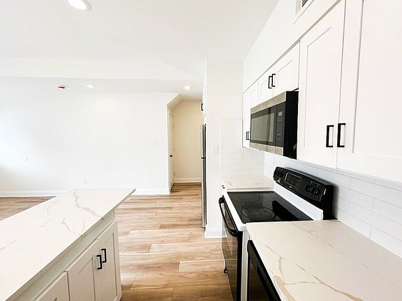 Quartz countertopsWhite shaker cabinetsStylish kitchenLuxury plank flooringSubway tile backsplashSecure private entrance