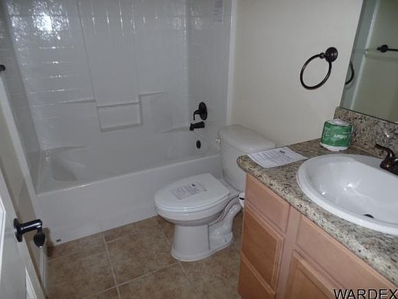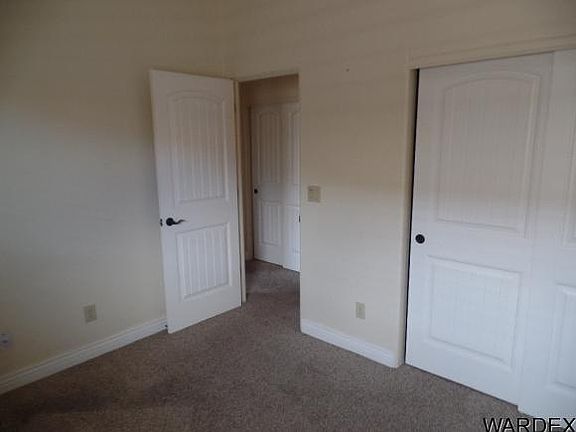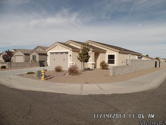 Newer home, 3-bedroom 2 bath home w/spacious 2 car garage. Large rear yard with block wall privacy, front yard is landscaped with decorative crushed rock, roses & shrubs. Spacious living room with neutral tones, kitchen island. Ceiling fans, granite counter tops, ceramic tile flooring and wall to wall carpet throughout. Completely landscaped front and back yard. Custom textured interior walls. Energy efficient synthetic stucco. Located on a corner lot and close to Hualapai School. This home is across from the green hole. Close to schools.