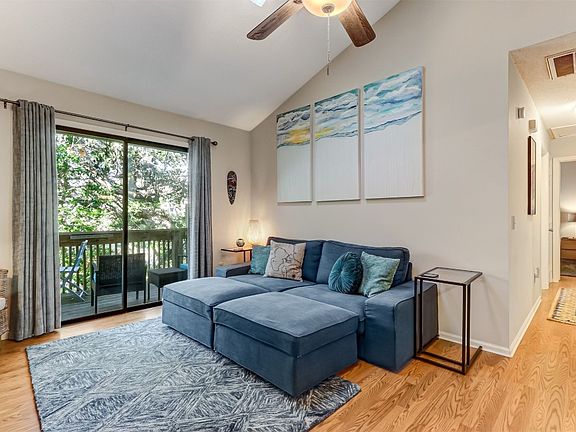 FOREST RIDGE VILLAGE, WALK TO THE BEACH, COMMUNITY POOL!! This 2/1 furnished condo is TURN KEY and located two blocks from the pristine beaches of Amelia Island. The second story, single level unit is tucked away under the live oaks and the perfect size to maintain the easy going island lifestyle. High ceilings and an open floor plan compliment the updated kitchen and living room with slider to a private balcony. The spacious primary bedroom has separate access to updated bathroom. Whether in the market for a year round residence, investment property, or looking for a vacation retreat near the seaside -this property is a must see! Amenities include: community pool, tennis courts, playground area, picnic and grill area. Short term rentals approved, pet friendly community, HOME WARRANTY included. Close access to Egan's Creek Greenway, the YMCA + short bike ride to the riverfront, shopping and eclectic restaurants of historic Fernandina Beach. Close proximity to local schools.