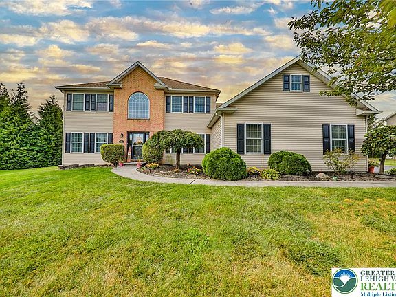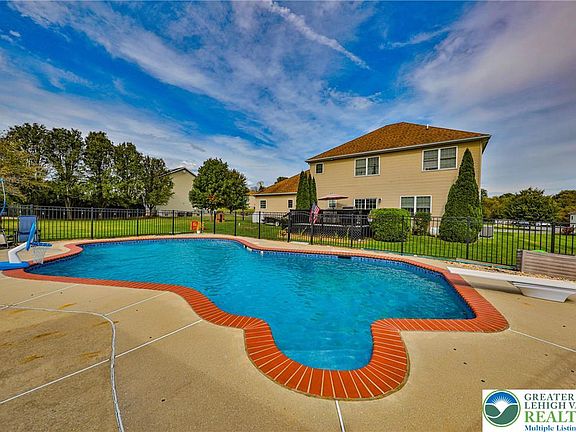 Beautiful Florey Farm 5 bedroom 3 full bath colonial, located in NAZARETH SCHOOL DISTRICT features plenty of updates and incredible space. You will love having a full bath and bedroom on the main floor which is perfect for guests or extended family! The elegant two story foyer entry showcases a formal dining room to the right accented with raised panel molding and modern chandelier, and a formal sitting room to the left, which could serve as an office space. A gas fireplace is the focal point of the open concept family room which leads to a well appointed eat in kitchen that comes with an oversized center island with additional seating. Every bathroom has been tastefully updated with modern flair. The flooring is newer throughout most of the home, including LVP, and Bruce hardwood flooring encompassing the formal dining and living rooms as well as the family room. The master bedroom features stunning tray ceiling with wood accents, and raised panel molding, walk in closet, and a recently renovated designer ensuite with step in shower with glass doors, luxurious soaking tub, and modern dual vanity. The full finished basement also has an expansive family room plus an additional two more rooms perfect for office/den. Enjoy back yard bbq sitting on the deck that overlooks a dreamy backyard and a fabulous inground pool and new cabana. Plenty of room to roam, garden, and enjoy here. OPEN HOUSE DEBUT SAT 1-3 AND SUN 10-12.