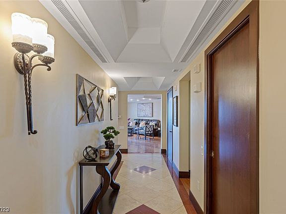 CHARMING RESIDENCE ON THE 11TH FLOOR. FEATURING VIEWS OF DOWNTOWN, & MOUNTAINS. SPACIOUS BALCONIES, 1 LEVEL THROUGHOUT. 2,050 FT. INTERIORS + 408 FT OF PRIVATE TERRACES. 2 EN-SUITE BEDROOMS, POWDER ROOM, LAUNDRY ROOM W/CABINETS, SIDE BY SIDE WASHER-DRYER & SINK & MORE. 1 STORAGE UNIT, 1 CAR SPACE + YOU MAY VALET A 2ND CAR. THE HOA FEE COVERS; WATER, GAS, CABLE, INTERNET, VALET, CONCIERGE, LIMOUSINE SERVICES,SECURITY, MANAGEMENT ON SITE & MORE. THE STIRLING CLUB IS LOCATED ON THE PROPERTY GROUNDS OFFERING FULL SPA SERVICES, SALON, BARBER SHOP, MASSAGE, FACIALS, NAILS & OTHER TREATMENTS. THE CLUB FEATURE A LARGE & WELL EQUIPPED GYM, PILATES & YOGA CLASSES, TENNIS & PICKLE-BALL COURTS, SAUNA, INDOOR & OUTDOOR POOLS, GOURMET RESTAURANT, BAR, CIGAR LOUNGE, STARBUCKS, WINE CELLAR/TASTING ROOM, SPACE AVAIL. 4 PRIVATE FUNCTIONS & MORE. MAKE LAS VEGAS YOUR HOME! ONLY $317 PER SQUARE FOOT. GREAT GET A WAY, NEAR THE BEST ENTERTAINMENT. AFFORDABLE LUXURY.