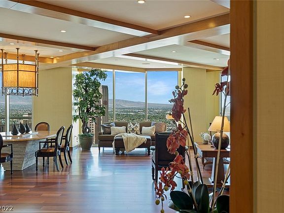 MAKE LAS VEGAS YOUR RESIDENCY TODAY! CUSTOMIZED FLOOR TO CEILING PENTHOUSE LEVEL ON THE PRESTIGIOUS 31ST FLOOR WITH A DOUBLE VIEW. MAGNIFICENT VIEWS OF THE LAS VEGAS STRIP, STRAT, DOWNTOWN, MOUNTAINS, & 2 GOLF COURSES. LARGE 4,103 FT. INTERIORS + 585 FT OF PRIVATE BALCONIES. ONE OF A KIND RESIDENCE, PRIVATE FOYER, EXTRA LARGE LIVING ROOM, 3 EN-SUITE BEDROOMS, 4 BATHROOMS. WELL EQUIPPED KITCHEN W/MIELE APPLIANCES. 1 STORAGE UNIT, 2 CAR SPACES + YOU MAY VALET 2 MORE CARS. HOA FEES COVER; WATER, GAS, CABLE, INTERNET, VALET, CONCIERGE, LIMO SERVICES, SECURITY, MANAGEMENT ON SITE & MORE. THE STIRLING CLUB IS LOCATED ON THE PROPERTY GROUNDS OFFERING SPA SERVICES,SALON,BARBER SHOP,MASSAGE, FACIALS,NAILS & OTHER TREATMENTS. THE CLUB FEATURES LARGE & WELL EQUIPPED GYM,PILATES & YOGA CLASSES,TENNIS & PICKLE-BALL COURTS,SAUNA,INDOOR & OUTDOOR POOLS,GOURMET RESTAURANTS,BAR,CIGAR LOUNGE,STARBUCKS,WINE CELLAR,TASTING ROOM,SPACE AVAIL. 4PRIVATE FUNCTIONS. BEST PRIME BUILDING LOCATION W/DOUBLE VIEW..
