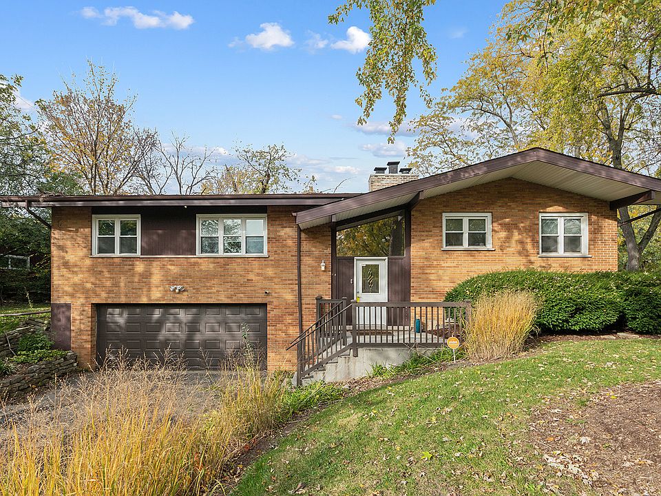 Stylish 4-bedroom home in the serene, wooded Flossmoor Dells subdivision, ideally situated between the Olympia Fields and Flossmoor Country Clubs. The kitchen boasts updated cabinetry with elegant glass-front and shaker-style cabinets, granite countertops, a spacious peninsula, custom backsplash, stainless steel appliances, breakfast bar, and ample table space. The formal Living and Dining Rooms are designed for comfort, featuring a full-wall fireplace juxtaposed across from a wall of windows that offer stunning views of the expansive backyard. The primary bedroom includes double closets and an en-suite bathroom for added privacy. Three additional, generously-sized bedrooms and two more bathrooms-one full, one half-provide flexible living space. The lower level features a cozy Family Room with a second beautiful fireplace feature wall, direct access to the backyard, a utility room, and extra storage. Throughout the home, allergen-free hardwood, ceramic, and wood laminate flooring add a fresh, clean touch. With neutral decor, crisp white trim, newer kitchen and bathrooms, and two beautifully updated fireplaces, this 2,500-square-foot home on nearly half an acre with mature trees is offered at an excellent value.