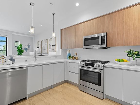 Transparent price! Experience the best of Berkeley living in this rare 2020-built modern condo at Bloom Berkeley. Step into a spacious, open-concept living and dining space equipped with top-of-the-line Bosch and Liebherr kitchen appliances, perfect for creating culinary masterpieces. Enjoy the convenience of an in-unit washer and dryer, built in closets in both bedrooms and the entry, sturdy white oak flooring, secure indoor 1-car parking, and a shared rooftop deck. This location is an urbanite's dream, with a high walk score that puts you within easy reach of Berkeley's best. Stroll to Berkeley Bowl West for your groceries, explore the trendy shops and boutiques on vibrant 4th Street, or discover an endless array of cafes, restaurants, and parks just moments away. Commuting is a breeze from this central location, providing quick and easy access to major Bay Area companies and the UC Berkeley campus. This property combines modern luxury with the rich culture and energy of Berkeley, offering a lifestyle of unparalleled convenience and comfort. One of the exterior photos is a render from the developer.