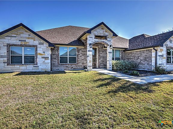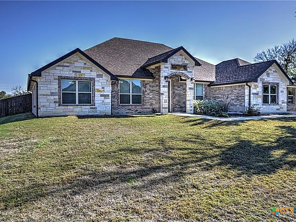 Welcome home to a spacious and functional 4-bedroom, 3-bath property in Beulah Bluff Estates, set on .73 acres and designed for everyday comfort and easy entertaining. Step inside to an open living area with cathedral ceilings, warm wood beam accents, and oversized windows that bring in natural light and showcase the covered back patio. A dedicated office and a formal dining area offer flexibility for work, gatherings, and day-to-day living. The kitchen flows seamlessly into the living and dining spaces and includes granite countertops, a pantry, and a built-in oven and microwave for effortless meal prep and hosting. The split floor plan offers intentional separation. The primary suite is privately positioned on one side of the home with sliding glass door access to the patio and an ensuite with a corner garden tub, walk-in shower, dual vanities, and a spacious walk-in closet. Two secondary bedrooms share a full bath on the opposite side. A fourth bedroom is tucked near the back of the property with a short hallway that includes a full bathroom, plus convenient access to the back patio — a great setup for guests, a private workspace, or multi-generational living. Outdoor living is a highlight. The covered back patio features a wood-plank ceiling, ceiling fan, and outdoor sink/prep counter, making it easy to enjoy peaceful evenings, weekend cookouts, or gatherings with family and friends in the expansive backyard. Beulah Bluff Estates offers a comfortable setting with quick access to I-14 and I-35, area lakes, parks, and recreation — ideally situated for traveling to local attractions or commuting to Fort Hood.